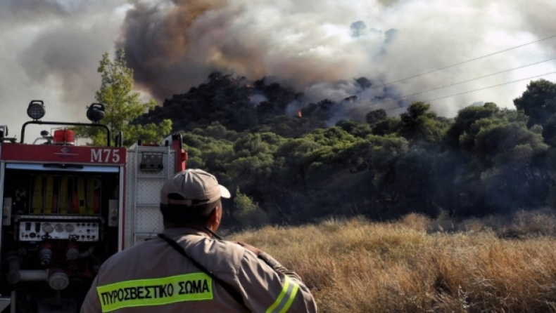Στο σημείο επιχειρούν 18 πυροσβέστες με 9 οχήματα, ενώ κινητοποιήθηκαν 1 ε/π, 2 α/φ air tractors.